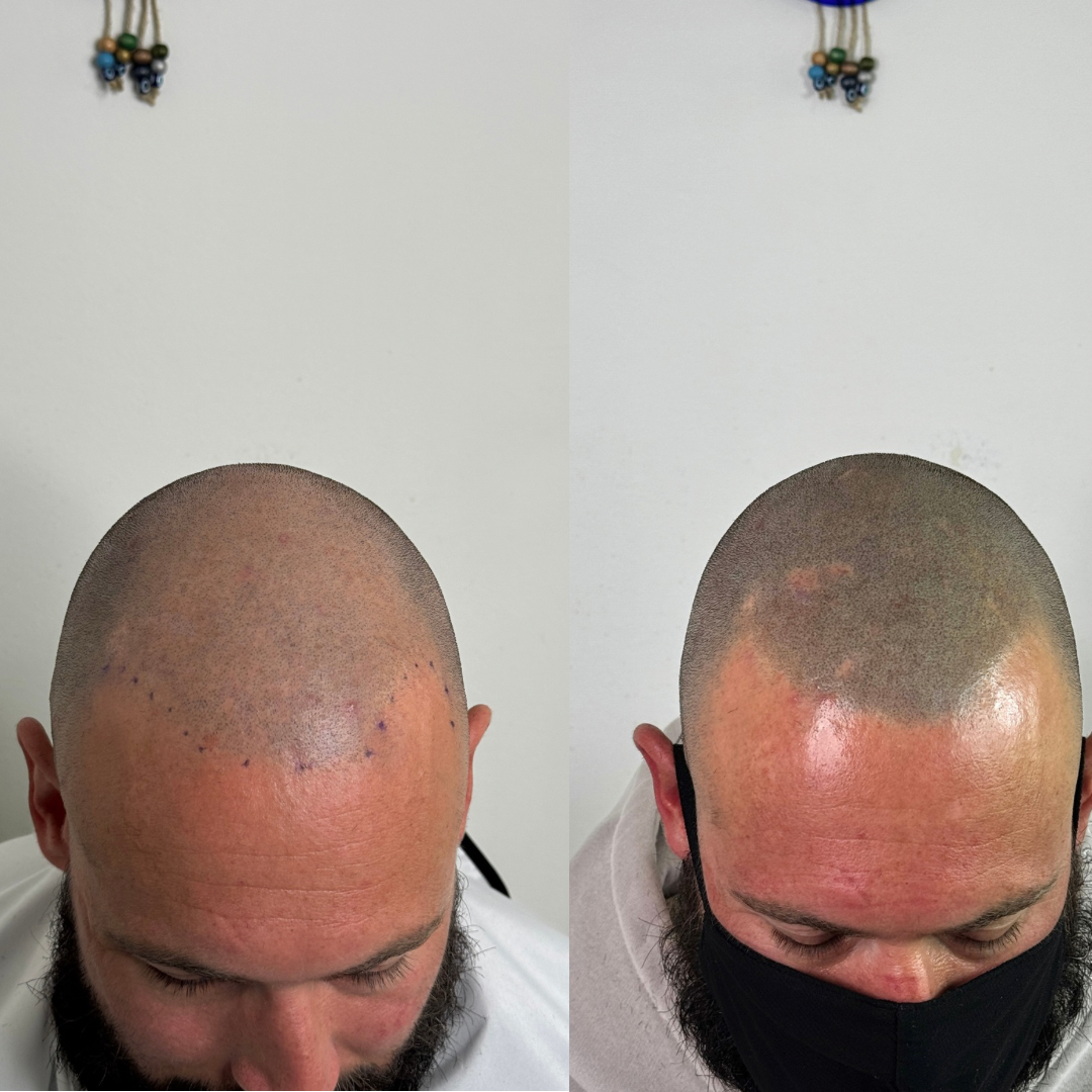 Scalp Micro Pigmentation (SMP) is a non-invasive cosmetic procedure that involves the application of pigments on the scalp to create the illusion of hair follicles. It's commonly used to address issues like hair thinning, receding hairlines, or baldness. The procedure can provide a natural-looking hairline and the appearance of a closely shaved head, making it a popular choice for those seeking a solution to hair loss or wanting to enhance their hairstyle.